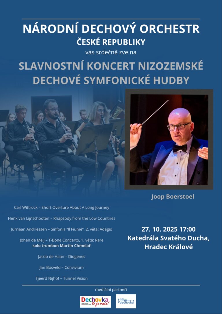 16. 10. 2022 – Pardubice, Haus der Musik, gemeinsames Konzert des NDO und des Blasorchesters der Béla-Bartók-Universität in Szeged. Václav Blahunek, József Csikota, Solisten: Jan Buček (Trompete), Ondřej Toman (Klarinette), Kateřina Soukupová (Waldhorn)